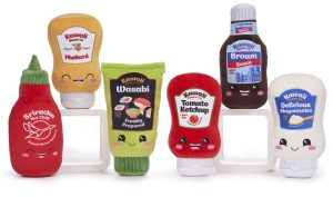 Maak kennis met de schattigste sausflesjes ooit! Deze unieke collectie bestaat uit zes verschillende kawaii knuffels in de vorm van bekende sauzen: Sriracha, Mosterd, Wasabi, Ketchup, Barbecue en Mayonaise.