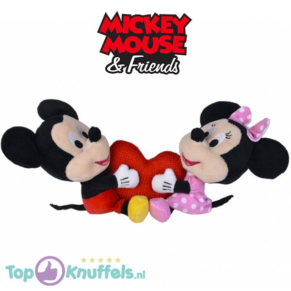 Mickey Mouse 20 cm + Minnie Mouse 20 cm met Hart Pluche Knuffel Set