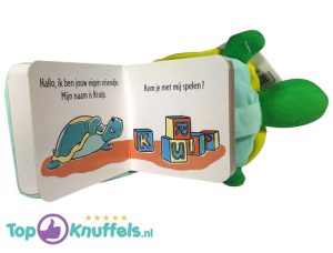 Schildpad Knuffelboekje (Kruip Het Schildpadje 15 cm) + Pluche Knuffel Vingerpop (10 cm)