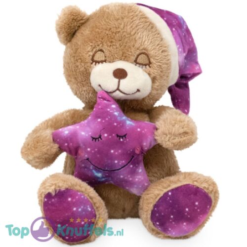 Teddybeer Bruin met Slaapmuts (Paars) Pluche Knuffel 22 cm