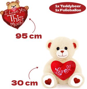 Laat iemand extra speciaal voelen met onze Teddybeer Pluche Knuffel van 30 cm en de stijlvolle Liefdes Ballon van 95 cm. Dit duo is het ideale cadeau voor bijzondere gelegenheden zoals Valentijnsdag, Moederdag, of gewoon om iemand te verrassen!